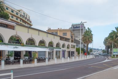 The apartment sits directly on Plage du Midi, at the foot of Le Suquet (old town). This area combines a relaxed beachfront atmosphere with quick access to Cannes’ restaurants, cafés, and shopping streets. The beach offers both public sections and areas with sunbeds and umbrellas for rent, and several restaurants line the shore.