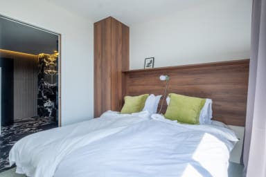 Enjoy the views and abundant natural light from the spacious private terrace — perfect for morning coffee, dining under the stars, or unwinding after a busy day at a congress.