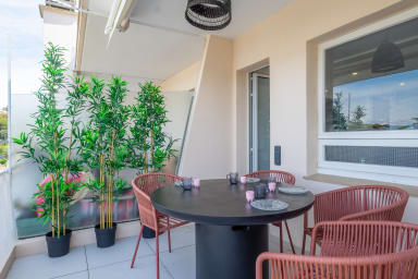 Welcome to this bright and stylish top-floor apartment located in the east part of central Cannes. Recently renovated and located on the 6th floor (with elevator), this 100 m² apartment is ideal for both business stays and family holidays.