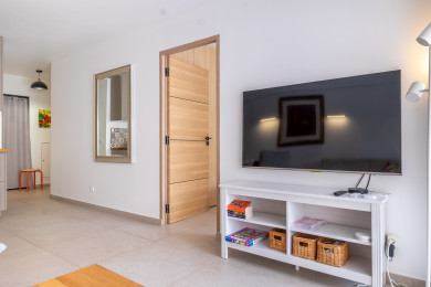 There’s a dining table in the living room, but most guests prefer to enjoy their meals outdoors on the terrace, especially in the evening sun. The apartment is in excellent condition – recently renovated with clean, modern decor.
