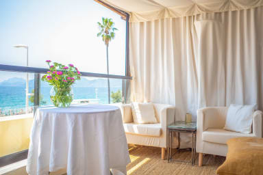 Квартира расположена напротив пляжа дю Миди ( Plage du Midi) . Из окна открывается захватывающий вид на море и горы Эстерель.