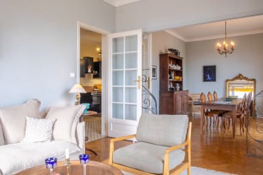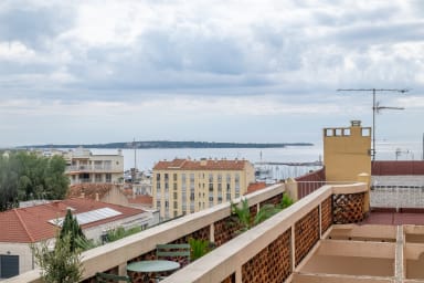 Om du söker ett rymligt boende, centralt beläget, med flera sovrum och utsikt över Cannes och Medelhavet är detta våningen för dig.