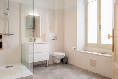 På grund av vånings centrala läge finns det egentligen inget behov av bil för att nå vare sig strand, affärer, restauranger eller annan service. Allt finns på gångavstånd.