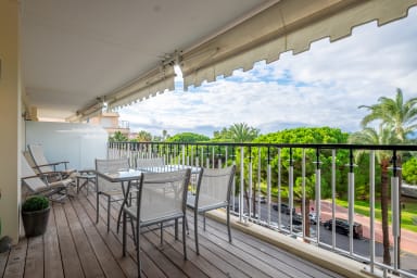 Ljus trerummare med generös balkong mot La Croisette och havet.