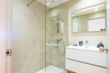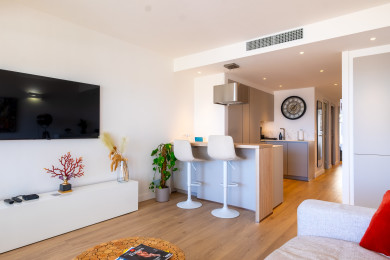 Lägenheten har luftkonditionering och ligger i en lugn miljö, samtidigt som den har närhet till både havet och stadens service.