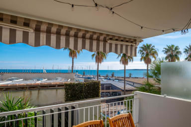 Lägenheten ligger i det eftertraktade området Pointe Croisette (även kallat Palm Beach), mittemot Plage Moure Rouge. Detta är en lugnare del av Cannes med nära tillgång till stränder, strandpromenader, lokala restauranger och butiker. Stranden är publik och kostnadsfri, med gott om plats även under högsäsong. Vattnet är ofta lugnare här än närmare centrum, vilket gör stranden uppskattad av lokalbor och barnfamiljer.
