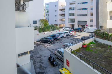Lägenheten ligger på andra våningen med hiss i ett bostadshus i Pointe Croisette. Med en total yta på cirka 47 m² erbjuder den en praktisk planlösning, modern standard och gott om naturligt ljus. Lägenheten passar väl för par, vänner eller en liten familj som söker ett bekvämt boende nära stranden.