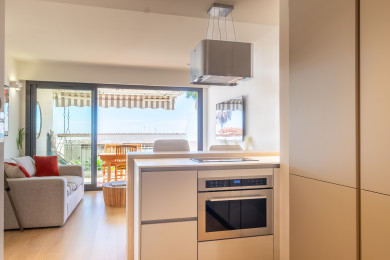 Lägenhet med två sovrum, balkonger och delvis havsutsikt, vid stranden Moure Rouge.